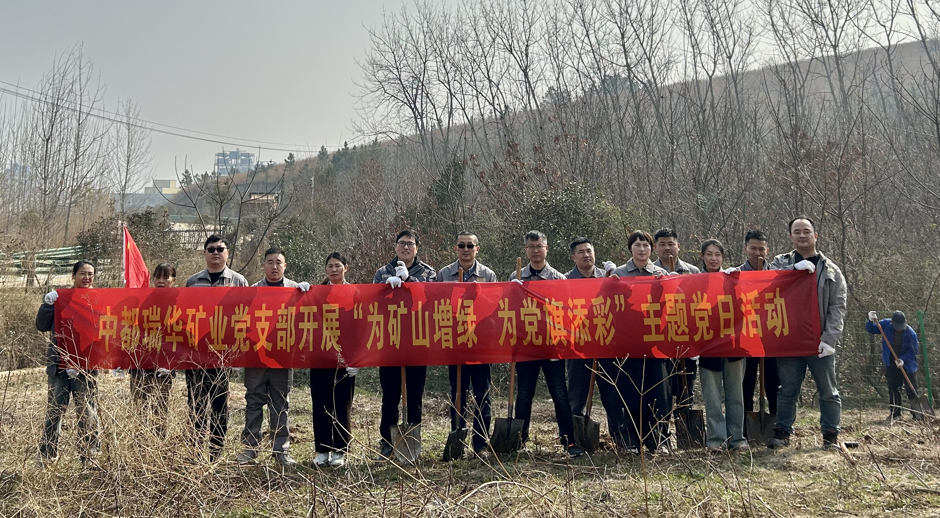 為進(jìn)一步突出黨建引領(lǐng),彰顯黨員干部的責(zé)任擔(dān)當(dāng),提高公司職工的環(huán)保意識(shí),3月12日,中都瑞華黨支部組織開(kāi)展“為礦山增綠為黨旗添彩”主題黨日活動(dòng)。
