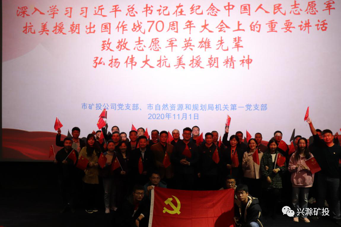 11月1日下午,市礦投公司黨支部聯(lián)合市自然資源和規(guī)劃局機(jī)關(guān)第一黨支部開(kāi)展愛(ài)國(guó)主義主題教育活動(dòng),集中觀看習(xí)近平總書(shū)記在紀(jì)念中國(guó)人民志愿軍抗美援朝出國(guó)作戰(zhàn)70周年大會(huì)上的重要講話視頻和抗美援朝主題電影《金剛川》,共同緬懷中國(guó)人民志愿軍建立的不朽功勛,向創(chuàng)造偉大奇跡的志愿軍將士致以崇高敬意。