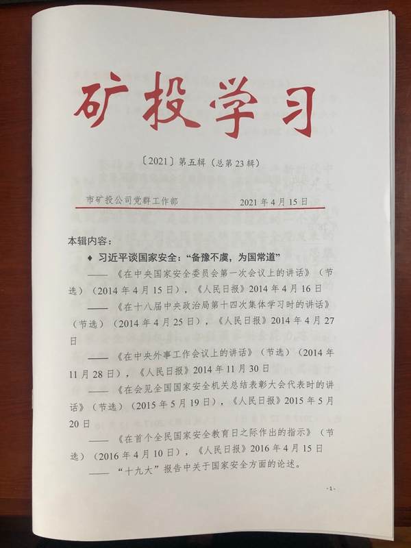 一是以《礦投學(xué)習(xí)》為載體,詳細(xì)整理了習(xí)近平總書記關(guān)于國(guó)家安全、網(wǎng)絡(luò)安全等方面的重要論述摘要,并印發(fā)至各部室、各子公司。有助于全部職工系統(tǒng)學(xué)習(xí)、理解、掌握習(xí)近平總書記關(guān)于總體國(guó)家安全觀的重要論述。