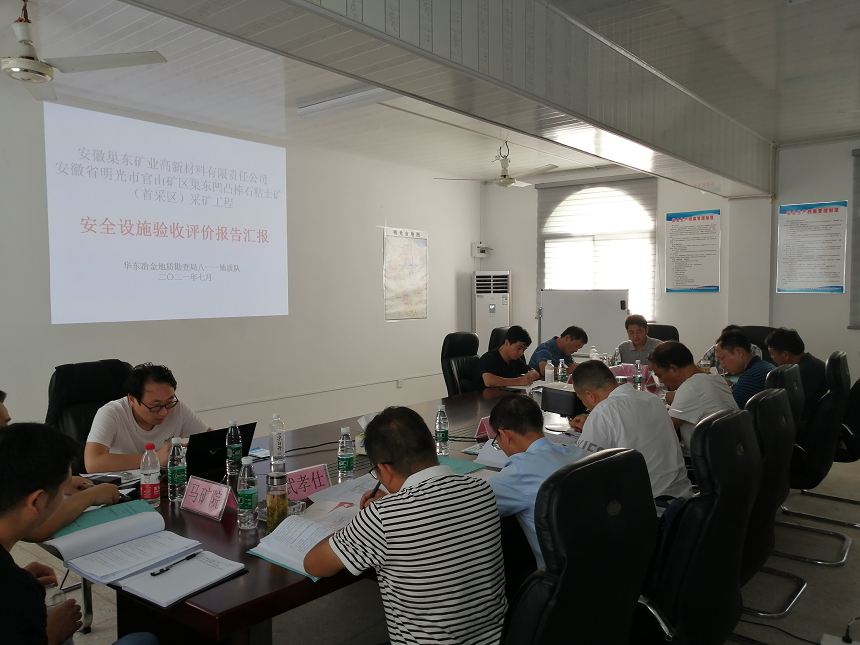 會議前專家組一行前往巢東礦區(qū)首采區(qū)逐一查看安全設施的建設情況,隨后在會議室分別聽取巢東礦業(yè)公司關(guān)于項目建設和試運行情況介紹、瑯琊山礦業(yè)工程公司關(guān)于項目建設施工情況介紹、華東冶金勘查局八一一地質(zhì)隊關(guān)于《安全設施驗收評價報告》的介紹,期間專家組針對現(xiàn)場、驗收評價報告以及其他軟件資料給予充分的認可,同時對存在的問題進行點評,并要求驗收評價單位對報告進一步修改、完善。