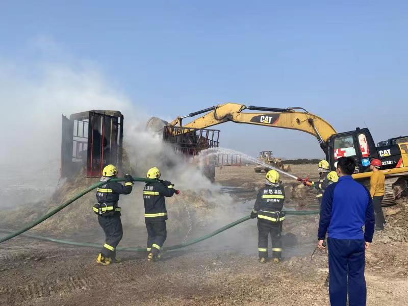 11月16日中午12時(shí)許,澗溪鎮(zhèn)姚郭村澗官路路口一輛滿載稻草的貨車不慎刮到路邊高壓電線引發(fā)稻草著火,情急之下,貨車司機(jī)將車輛開往巢東礦區(qū)磅房尋求救援。興明礦業(yè)總經(jīng)理王秀超得知火情后,立即啟動(dòng)火災(zāi)應(yīng)急預(yù)案,安排磅房工作人員撥打119火警電話,并在短短的3分鐘內(nèi)抽調(diào)了巢東礦區(qū)10余名工作人員、2臺(tái)灑水車和1臺(tái)挖掘機(jī),第一時(shí)間趕往現(xiàn)場救援。興明礦業(yè)職工冒著滾滾濃煙,沖進(jìn)火場現(xiàn)場,克服煙熏火燎等重重困難,奮力滅火,在消防官兵趕到前,有效阻止了火勢蔓延。隨后在與消防救援專業(yè)人員協(xié)同下,經(jīng)過1個(gè)多小時(shí)的不懈努力,終于把大火撲滅。