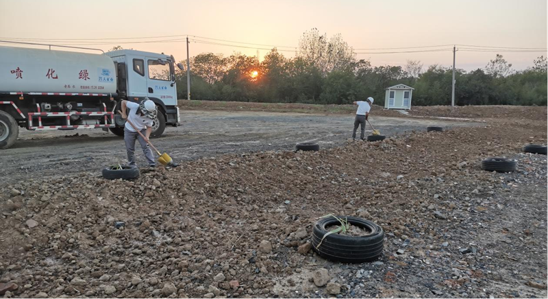 在具備種植條件后,公司陸續(xù)開(kāi)展移栽樹(shù)木、種植花草、澆水養(yǎng)護(hù)等工作。經(jīng)過(guò)一個(gè)多月的努力,原本荒蕪的礦區(qū)已經(jīng)悄然發(fā)生變化,路邊播撒的草種和格桑花都已發(fā)了芽。放眼望去,一抹抹淡綠色生機(jī)盎然。